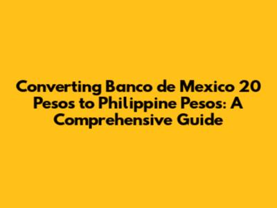 Hey guys! Ever wondered how much your Banco de Mexico 20 pesos is worth in Philippine pesos? Well, you're in the right place! This guide will walk you through everything you need to know about converting Mexican pesos (MXN) to Philippine pesos (PHP). We'll cover the current exchange rates, factors that influence these rates, and even some handy tips to ensure you get the most out of your conversion. So, let's dive in and unravel the mystery of currency conversion!