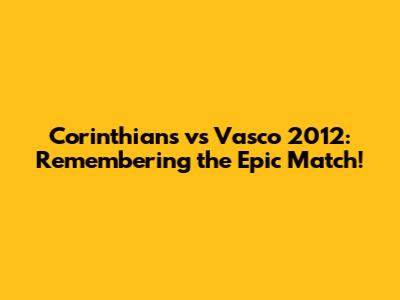 Corinthians Vs Vasco 2012: Remembering The Epic Match!