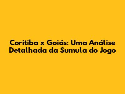Coritiba X Goiás: Sumula Do Jogo E Análise Completa