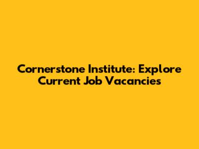Cornerstone Institute: Explore Current Job Vacancies