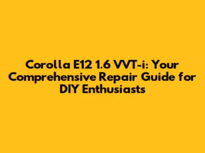 Hey there, fellow car enthusiasts! If you're here, chances are you're either a proud owner of a Toyota Corolla E12 1.6 VVT-i or you're considering becoming one. This car, often hailed for its reliability and fuel efficiency, has earned a special place in the hearts of many. But, like any machine, it needs regular TLC to keep running smoothly. This guide is your ultimate companion, packed with essential information to help you maintain, diagnose, and repair your Corolla E12 1.6 VVT-i. Whether you're a seasoned DIY mechanic or just starting, this guide is designed to empower you with the knowledge to tackle common issues and keep your Corolla in tip-top shape. We'll delve into various aspects, from engine maintenance and common problems to electrical system troubleshooting. So, grab your tools, and let's get started!