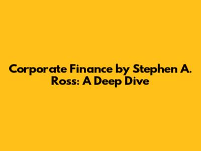 Hey guys! Let's dive into corporate finance with a focus on the renowned textbook by Stephen A. Ross. This book is a cornerstone for understanding the principles and practices that drive financial decision-making in companies. Whether you're a student, a finance professional, or just curious about how businesses manage their money, Ross's work offers invaluable insights. We will explore its key concepts, strengths, and how it stands up in today's rapidly evolving financial landscape.
