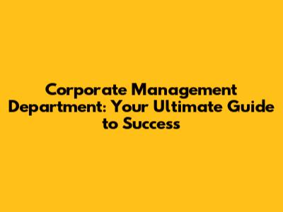 Corporate Management Department: A Comprehensive Guide