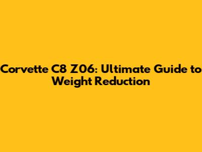 Why Weight Reduction Matters for Your C8 Z06