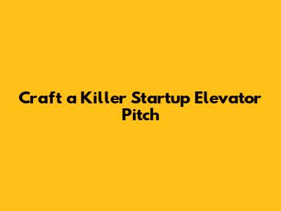 Craft A Killer Startup Elevator Pitch