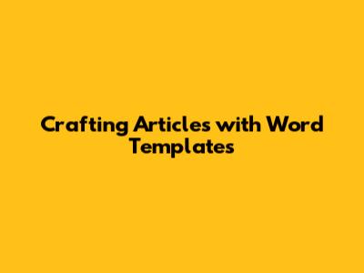 Crafting Articles With Word Templates
