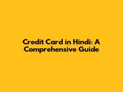 Credit Card In Hindi: A Comprehensive Guide