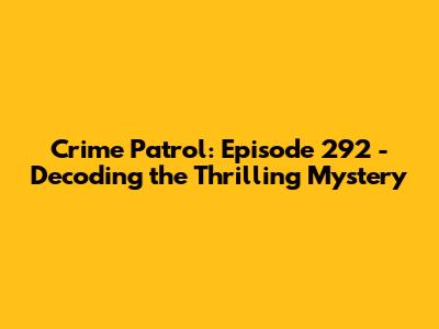 Unveiling the Enthralling Narrative: Crime Patrol Episode 292