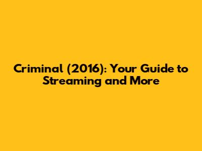 Where to Watch Criminal (2016): Streaming and Rental Options