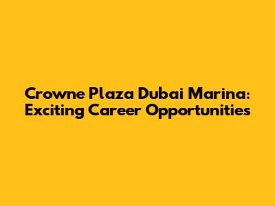 Crowne Plaza Dubai Marina: Exciting Career Opportunities