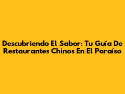 Descubriendo El Sabor: Tu Guía De Restaurantes Chinos En El Paraíso