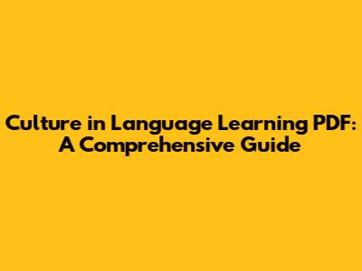Culture & Language Learning: A PDF Guide