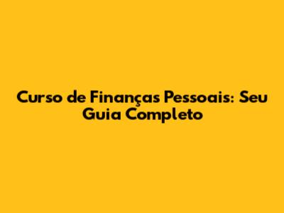Curso De Finanças Pessoais: Seu Guia Completo
