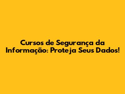 Cursos De Segurança Da Informação: Proteja Seus Dados!