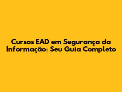 Cursos EAD Em Segurança Da Informação: Seu Guia Completo