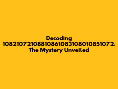 Decoding 10821072108810861083108010851072: The Mystery Unveiled