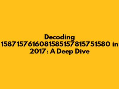 Decoding 1587157616081585157815751580 In 2017: A Deep Dive