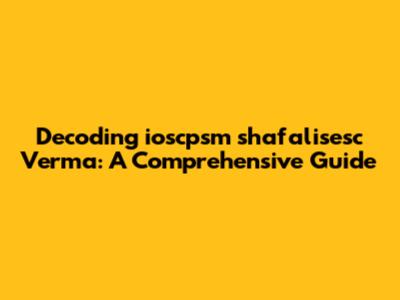 Decoding Ioscpsm Shafalisesc Verma: A Comprehensive Guide