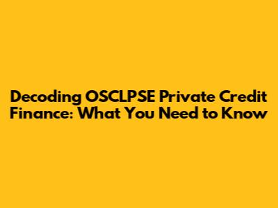 What Exactly is OSCLPSE Private Credit Finance?