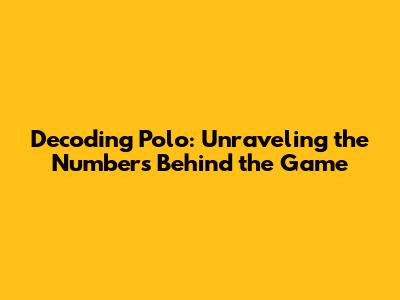 Decoding Polo: Unraveling The Numbers Behind The Game