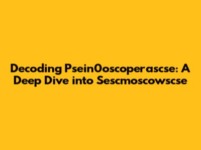 Decoding Psein0oscoperascse: A Deep Dive Into Sescmoscowscse