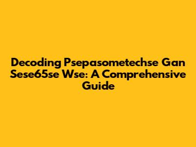 Decoding Psepasometechse Gan Sese65se Wse: A Comprehensive Guide