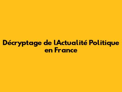 Décryptage De L'Actualité Politique En France