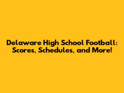 Delaware High School Football: Scores, Schedules, And More!