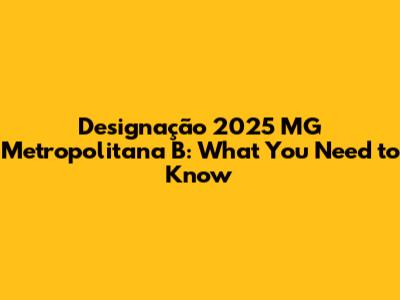 Alright guys, let's dive deep into the Designação 2025 MG Metropolitana B. This is a significant topic, and understanding it thoroughly can be super beneficial. Whether you're a resident, a business owner, or just someone curious about the developments in Minas Gerais, this guide will break down everything you need to know. We'll cover what the designation entails, its potential impact, and how you can stay informed. So, buckle up and let's get started!