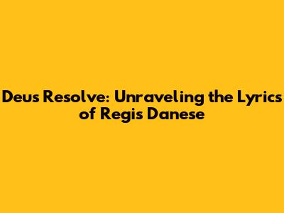 Deus Resolve: A Deep Dive Into Regis Danese's Lyrics