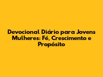Ei, meninas! Que tal embarcarmos juntas em uma jornada de fé, crescimento e descoberta? Este devocional foi criado especialmente para você, jovem mulher, que busca fortalecer sua relação com Deus, encontrar seu propósito e viver uma vida plena e significativa. Prepare-se para mergulhar em reflexões inspiradoras, estudos bíblicos, orações e desafios que te impulsionarão a crescer espiritualmente e a enfrentar os desafios da vida com coragem e esperança. Vamos juntas?