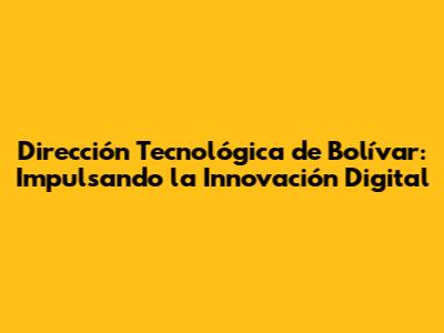 Dirección Tecnológica De Bolívar: Innovación Y Desarrollo Digital