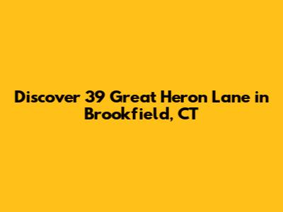 Hey there, home seekers and Brookfield enthusiasts! If you're on the hunt for a fantastic property in a prime location, you've probably stumbled upon 39 Great Heron Lane, Brookfield, CT. This address represents more than just a set of coordinates; it's a gateway to a lifestyle many dream of. Nestled in the charming town of Brookfield, Connecticut, this property offers a unique blend of tranquility and convenience. Whether you're a growing family looking for more space, a professional seeking a serene retreat, or an investor eyeing a gem, 39 Great Heron Lane is definitely worth a closer look. Let's dive deep into what makes this particular spot in Brookfield so special and what you can expect from life at this desirable address. We'll explore the neighborhood vibes, the potential of the property itself, and why Brookfield, CT, continues to be a sought-after place to call home.