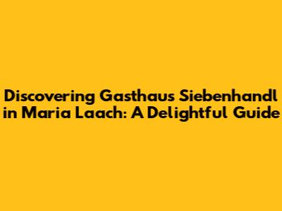 Discovering Gasthaus Siebenhandl In Maria Laach: A Delightful Guide
