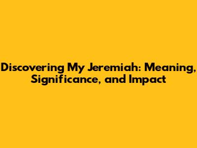 Discovering My Jeremiah: Meaning, Significance, And Impact