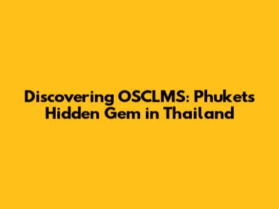 Discovering OSCLMS: Phuket's Hidden Gem In Thailand