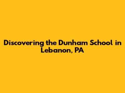 Discovering The Dunham School In Lebanon, PA