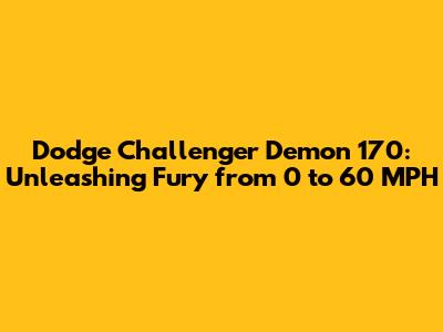 Guys, buckle up! We're diving deep into the heart-stopping world of the Dodge Challenger Demon 170, a beast that redefines what's possible on four wheels. This isn't just another muscle car; it's a symphony of raw power and cutting-edge technology, all harmonized to deliver an absolutely insane 0 to 60 mph experience. So, what makes this Demon so devilishly quick?