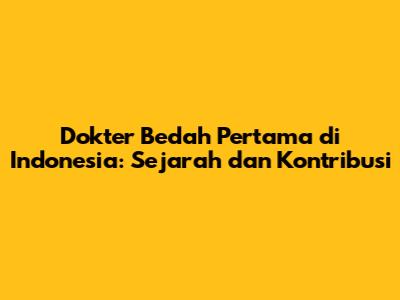 Dokter Bedah Pertama Di Indonesia: Sejarah Dan Kontribusi