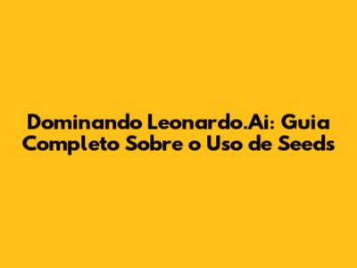 Dominando Leonardo.Ai: Guia Completo Sobre O Uso De Seeds