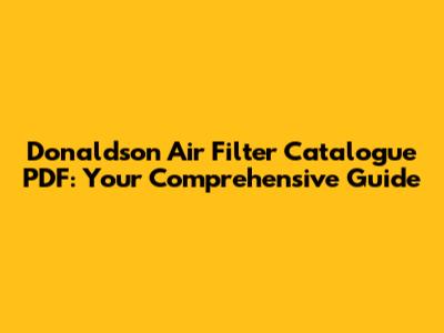 Donaldson Air Filter Catalogue: Find Your PDF Now