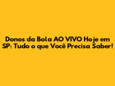 E aí, pessoal! Tudo bem com vocês? Se você é fã de futebol e adora acompanhar os debates mais quentes sobre o esporte, com certeza já ouviu falar do programa Donos da Bola. E hoje, em especial, o programa promete pegar fogo aqui em São Paulo! Vamos mergulhar de cabeça em tudo o que você precisa saber para não perder nenhum lance dessa edição imperdível.