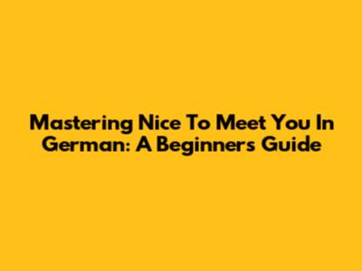 Mastering 'Nice To Meet You' In German: A Beginner's Guide