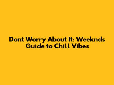 Don't Worry About It: Weeknd's Guide To Chill Vibes