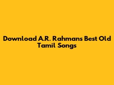 A.R. Rahman's old Tamil songs are a treasure trove of musical brilliance and innovation. His music has touched the hearts of millions and continues to inspire generations. By following the tips in this article, you can safely and legally download your favorite A.R. Rahman songs and enjoy them anytime, anywhere. So, go ahead and immerse yourself in the magical world of A.R. Rahman and relive the golden era of Tamil music!