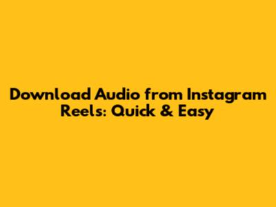 Download Audio From Instagram Reels: Quick & Easy