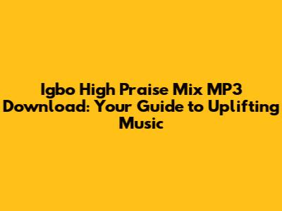 Download Igbo High Praise Mix MP3: Your Ultimate Guide