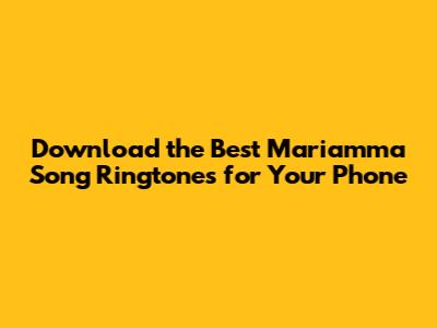 Download The Best Mariamma Song Ringtones For Your Phone