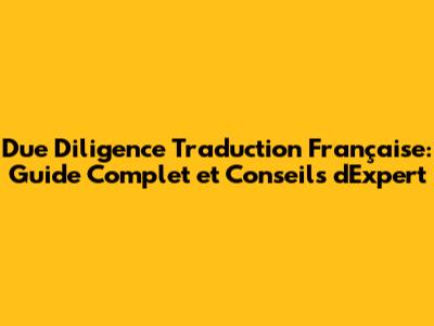 Comment Traduire les Documents de Due Diligence (How to Translate Due Diligence Documents)