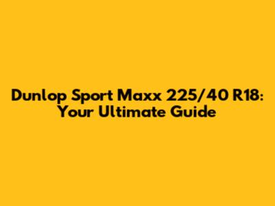 Dunlop Sport Maxx 225/40 R18: Review, Specs, & Performance
